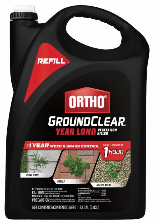 Ortho GroundClear Year Long Vegetation Killer Refill is formulated to kill weeds and grasses and prevent new growth for up to 1 year. To use this refill, simply attach a Comfort Wand from the original Ortho GroundClear Year Long Vegetation Killer ready-to-use spray bottle. Use on areas where weeds are not desired, including driveways, sidewalks, gravel areas, rock and desert landscapes, under decks, on parking areas, along fences and curbs, and in unplanted areas. The fast-acting formula should be applied to actively growing weeds. You’ll see visible results in an hour with Ortho GroundClear Year Long Vegetation Killer. Treats up to 400 sq. ft.