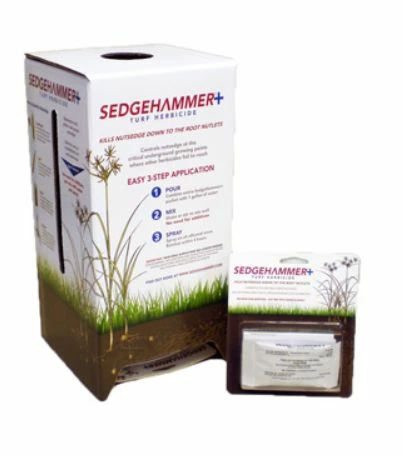 Sedgehammer+ is a selective herbicide for the control of nutsedge and other weeds in turfgrass, landscaped areas and other specified non-crop areas. Labeled Uses: Cool and warm season turfgrasses; Established woody ornamentals; Fallow areas.Yellowing and browning of leaves usually occurs within10-14 days. One 13.5 gram packet in one gallon of water treats 1,000 sq. ft. Active Ingredients: Halosulfuron-methyl…5.0% EPA Reg. No.:
