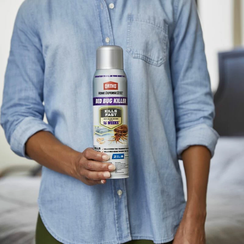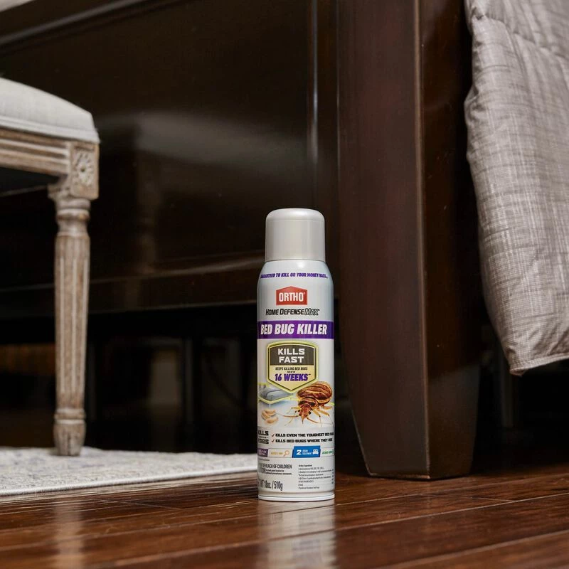 Kill bed bugs, fleas, and other listed insects fast with Ortho® Home Defense Max® Bed Bug Killer spray. The formula kills the toughest (pyrethroid-resistant) bed bugs and their eggs. This fast-acting spray works on bed bugs, fleas, brown dog ticks, ants (excluding fire, pharaoh, and harvester ants), spiders (excluding brown recluse and black widow), and other insects (as listed). Its keeps on killing bed bugs for up to 16 weeks on ceramic (non-porous) surfaces. Use it as a spot treatment to kill the bugs you see, and the ones hiding, by targeting bed frames, headboards, floors, baseboards, furniture, moldings, ceilings, walls, and carpeting. Use as the second step in the Ortho® Bed Bug Solution System. Step 1 involves the detection of bed bugs with the Ortho® Home Defense Max® Bed Bug Trap and step 3 calls for Ortho® Home Defense Max® Bed Bug & Flea Killer Powder, an easy-to-use treatment for cracks, crevices and other hard to reach places (sold separately).