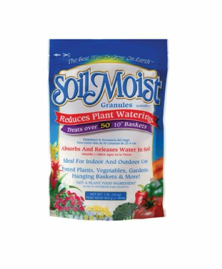Stores over 200 times its weight in water. Releases a steady supply of water as your plants need it. Non-toxic, safe and economical to use. Reduces plant watering by 50%. Reduces transplant shock. Lasts several seasons.