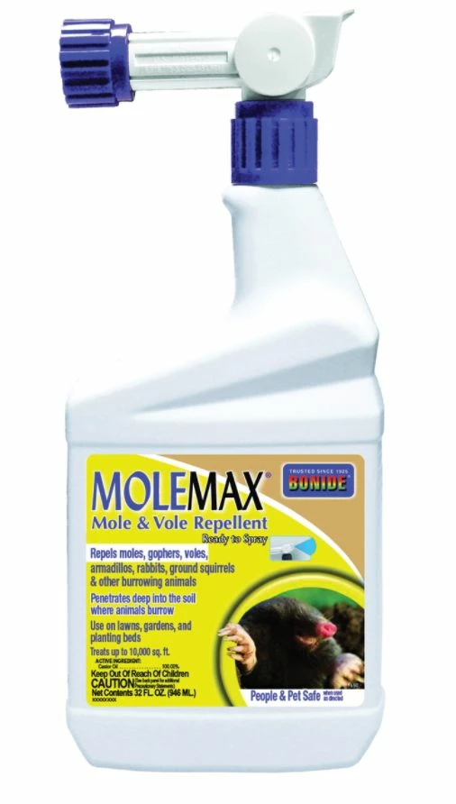 BONIDE MoleMax repels moles, voles, gophers, rabbits, and other listed rodents. Lasts up to 3 months, when used as directed. It penetrates deep into the soil where animals burrow for maximum efficacy.