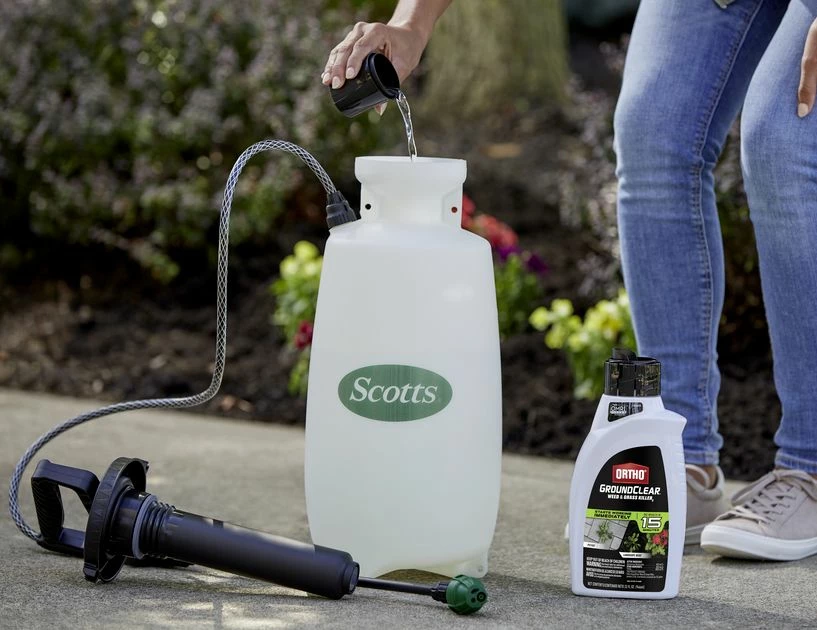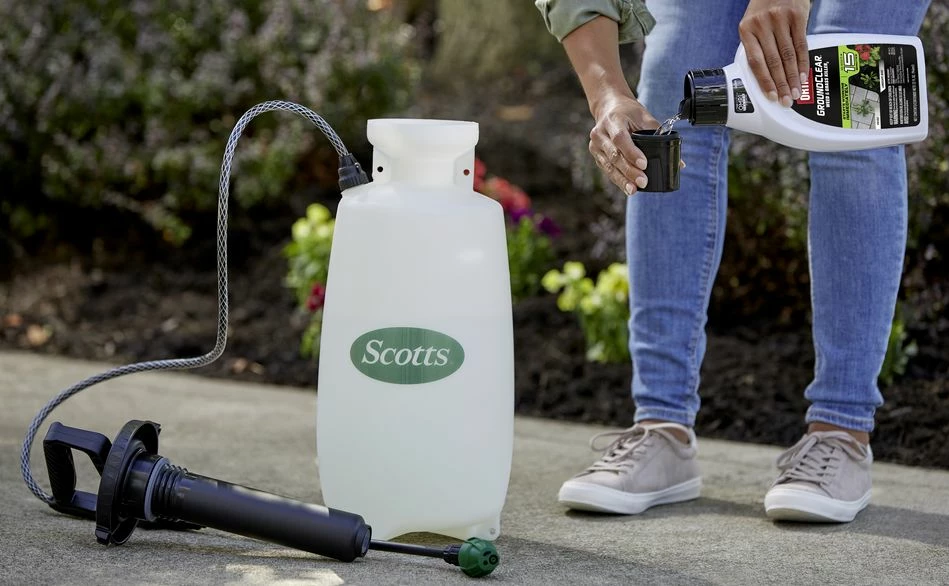 Ortho GROUNDCLEAR® weed and grass killer2 works fast to kill weeds and grasses, with results you can start to see in 15 min. Apply any time of the year when weeds are small (3 in tall or wide) and actively growing. Mix Ortho Groundclear weed and grass killer with water (see label for instructions) and apply with a tank sprayer to weeds in patios and landscape beds and experience results quickly.