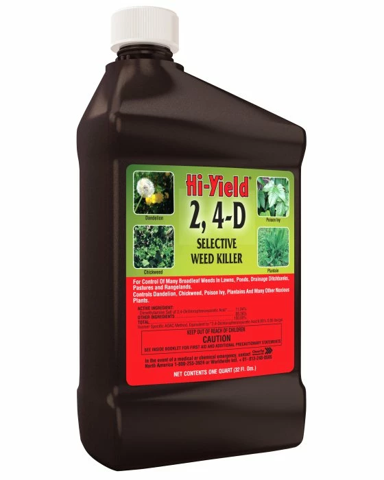 This product will kill or control many broadleaf weeds in addition to many other noxious plants susceptible to 2, 4-d. For control of in lawns, ponds, drainage ditchbanks, pastures and rangelands. Alder, american lotus, arrowhead, artichoke, aster, austrian fieldcress, beggartick, biden, bindweed, bitterweeds, bitter winter cress, blessed thistle, blue lettuce, boxelder, broomweed, buckhorn, bull thistle, bulrush, burdock dandelion, dock, dogbane, duckweed, elderberry, fleabane (daisy), flixweed, frenchweed, galinsoga, goatsbeard, goldenrod, ground ivy and many others listed on label. See label for specific applications