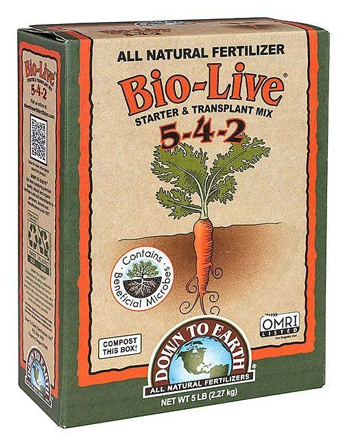 Down To Earth®’s Bio-Live is a rich, organic fertilizer featuring a unique blend of premium marine byproducts infused with a diverse mixture of beneficial microorganisms that improve resource utilization and enhance nutrient uptake. Select mycorrhizal fungi and bacterial species rapidly colonize the rhizosphere and surrounding soil. Ideal for all plant types, use DTE® Bio-Live® to encourage expansive root systems, increased crop yields and superior quality flowers, fruits, herbs and vegetables.