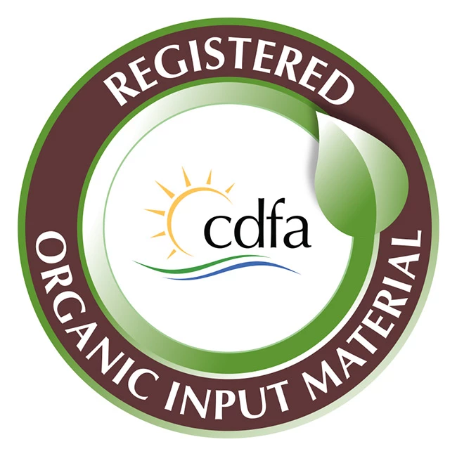 | Certification, Codes, Standards | CDFA-seal, OMRI Listed for Organic Use |