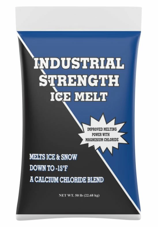 Industrial Strength is a blend that contains Calcium Chloride and Magnesium Chloride pellets. These two ingredients make Industrial Strength a powerful ice melter, capable of melting ice and snow quickly. Very few blends use premium pellets. The pellet actually allows the product to melt faster, longer and at lower temperatures.