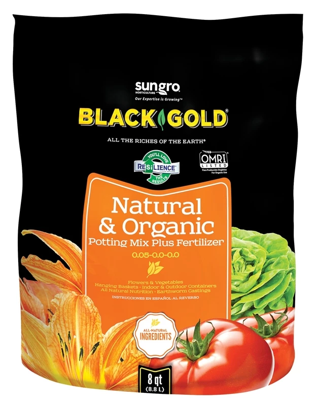 Rich, loamy mix. Premium choice for all-purpose gardening applications. 100 percent organic base of screened earthworm castings, Canadian sphagnum peat moss, compost and forest humus. Contains RESiLIENCE for stronger stems and improved root mass. Use in hanging baskets, patio containers, herb gardens, vegetable plantings and anywhere you want to use organic soil. Blended with perlite and/or pumice to ensure optimum aeration. OMRI listed.