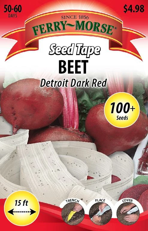 Seeds are pre-spaced in bio-degradable tissue tape to allow even planting, which virtually eliminates the need for thinning. Beet Detroit Dark Red is a popular all-purpose variety. The deep red, globe-shaped roots are tender and fine grained. Beets grow quickly and can be re-sown every 2 weeks until mid-summer.