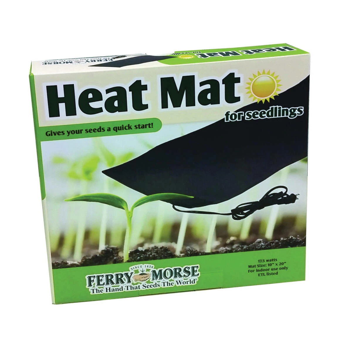 Gives your seeds a quick start. For indoor use only. Power rated at 17.5 W. Mat size of 10 x 20 in