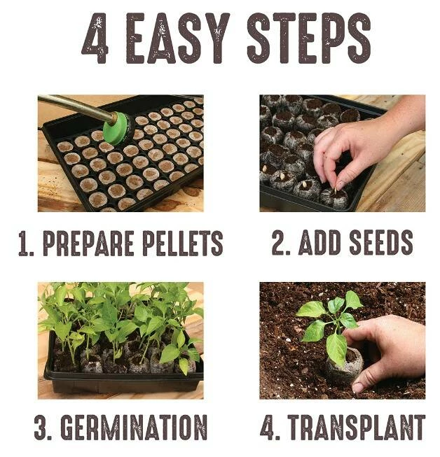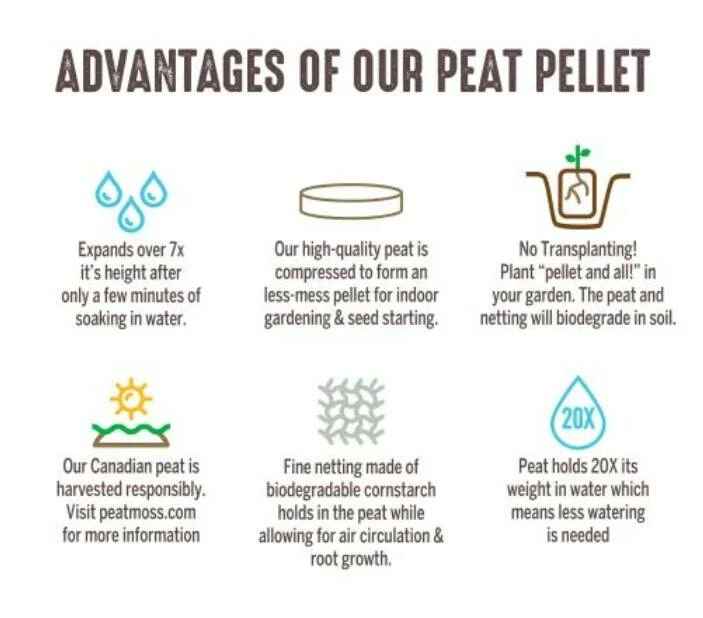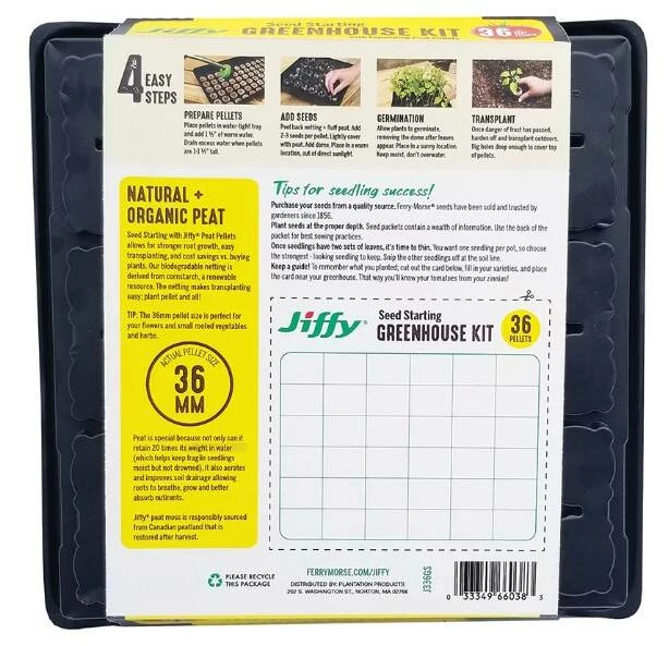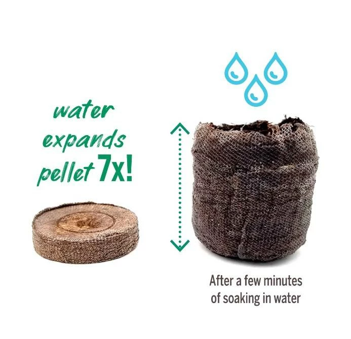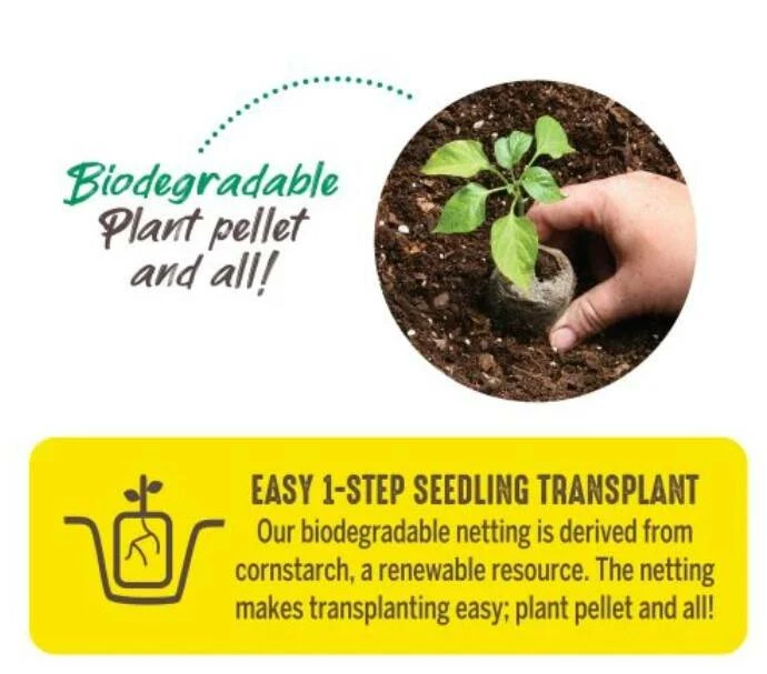 - Thirty-six (36) plant-based peat pellets, 36mm diameter (pellet netting is derived from cornstarch and will biodegrade in your garden)