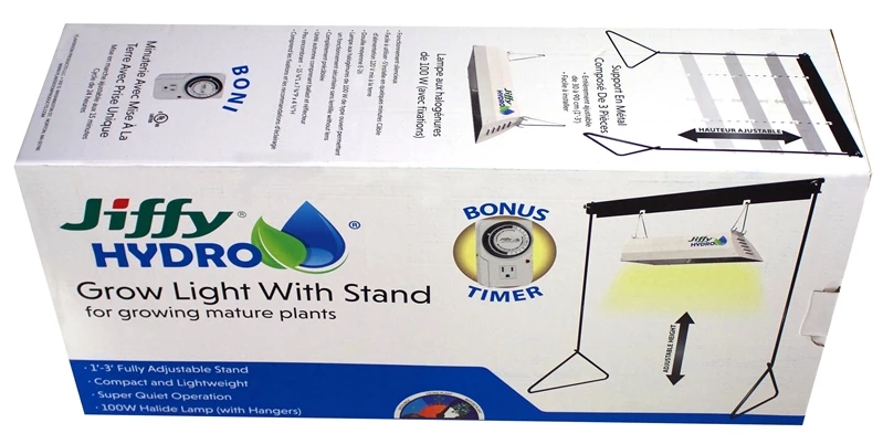 Grow light with stand. Ideal for growing young to mature plants. Lightweight and compact with quiet operation. Fully adjustable height from 1 to 3 ft Includes 150 watt high pressure sodium lamp with hangers, stand, and timer. No. JHPROLIGHT-2: Bulb Type: High Pressure Sodium, Bulb Finish: Clear, Pkg Qty: 1, Package Type: Box Thanks for shopping Hipp Hardware Plus’s Online Store for all your DIY and Home Improvement needs. Remember Hipps Help!