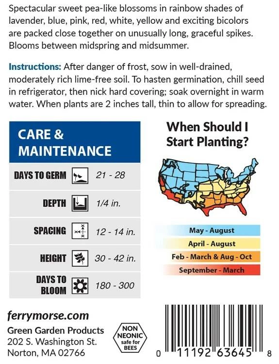Blooms are packed close together on long, graceful spikes, and these towering spires add vertical elegance to any landscape. Blooms from midspring to midsummer. These lupine seeds produce plants that are breathtakingly beautiful in full bloom and resilient?perfect for gardeners of all levels. Bees, butterflies, and hummingbirds are drawn to lupines, making them a valuable addition to any pollinator-friendly garden.