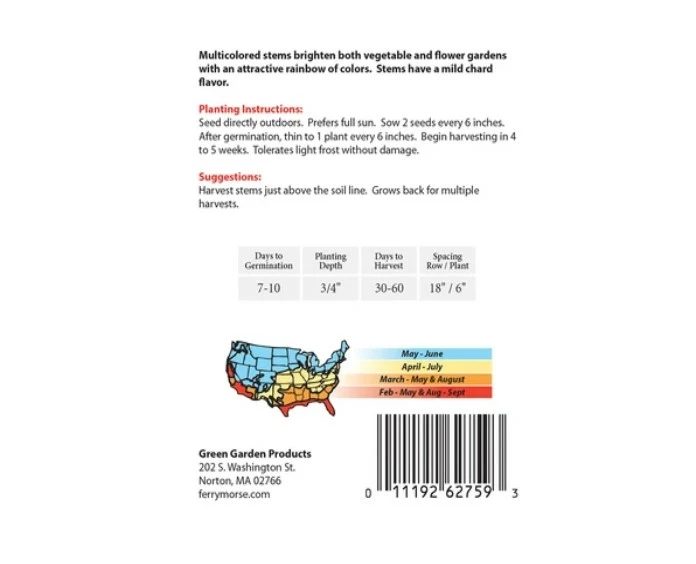 These stems have an attractive rainbow of colors that have a mild chard flavor. This cool season vegetables seeds will germinate in roughly ten days and be ready for harvesting within thirty to sixty days.