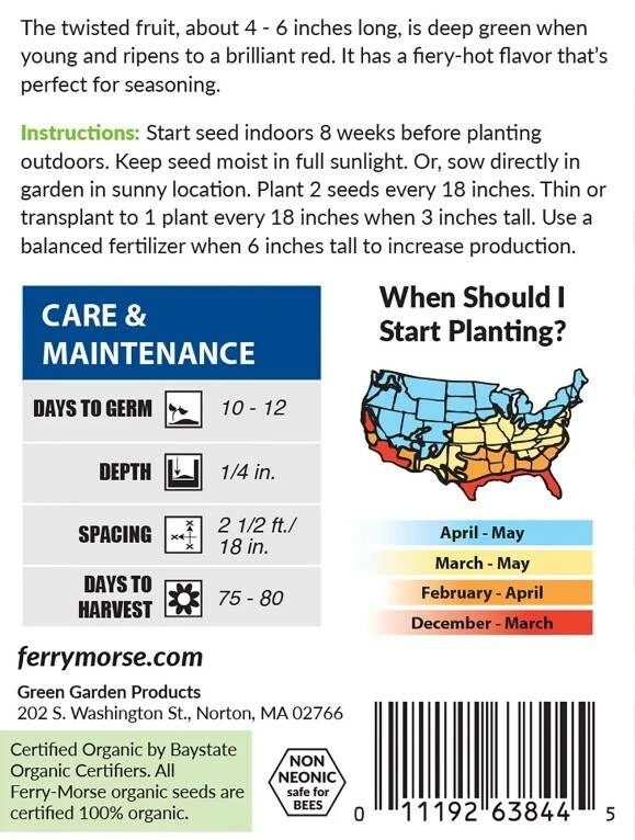 Our organic cayenne pepper seeds provide a bold, spicy kick to dishes and are a great way to flavor any meal. A perfect choice for the spice enthusiast, this pepper variety is renowned for its intense heat and flavor. Cayenne Long Slim Organic Seeds are a delicious way to enhance any recipe, from savory dishes to sweet treats.
