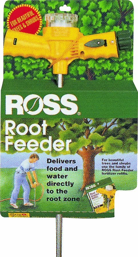 Delivers food and water directly to the root zone for beautiful trees, shrubs and roses. For use with the Ross family root feeder refills. 2 ft x 2 ft (24 in Wide x 24 in Deep x 48 in High) metal display unit on rollers for both No.70201 and No.12044D (SKU 5941653).Holds 24 root feeders and 48 54-ct refills.