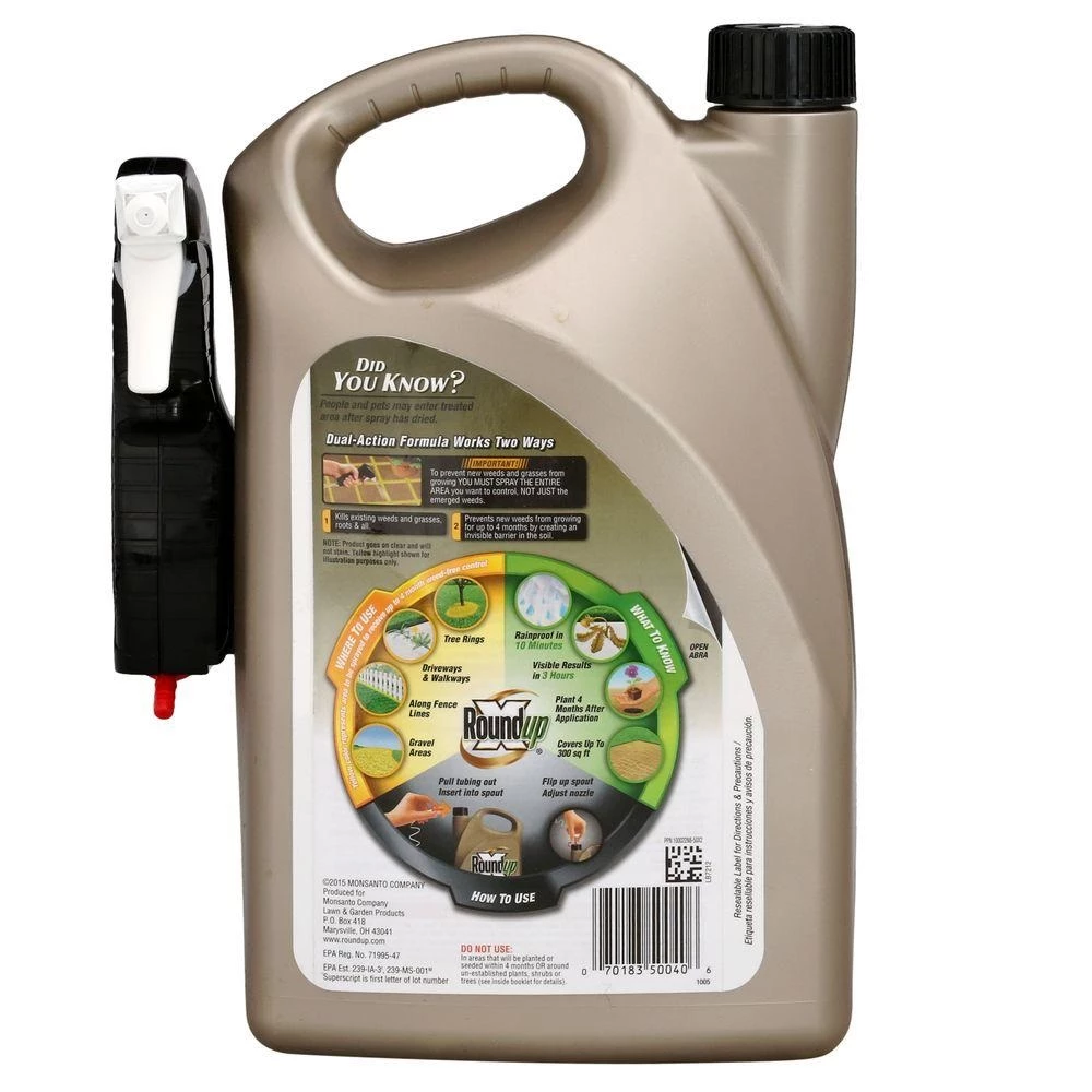 The dual action formula of Roundup® Extended Control Weed & Grass Killer Plus Weed Preventer kills your existing weeds and prevents new ones for up to four months. Use on driveways, sidewalks, patios, along fences and edges of lawns for lasting weed and grass control.