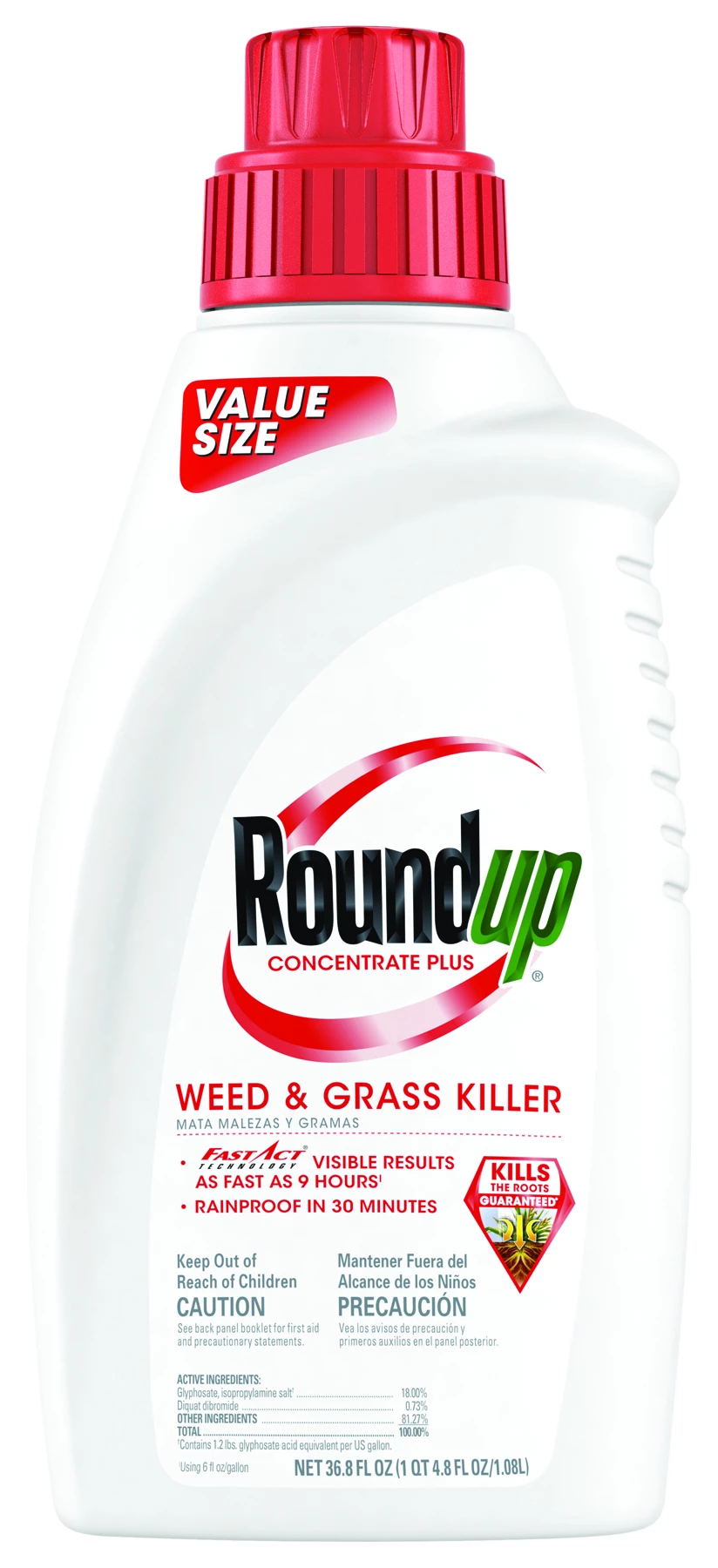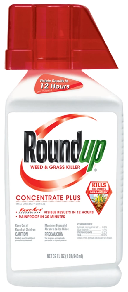 The economical, effective way to handle larger areas, Roundup®Concentrates are simple to prepare and use, and they deliver all the weed-control power you expect from the Roundup® brand. Roundup® Weed & Grass Killer Concentrate Plus is perfect for use around flowers, shrubs and trees, on patios, walkways, driveways, gravel areas and mulch beds, and along fences, edging and foundations (not for use around existing edibles). It is also effective on large areas such as lawn replacements or garden plot preparation. For best results, add 6 fl. oz. of concentrate to one gallon of water in a Roundup® Brand Premium Sprayer! The formula is rainproof in 30 minutes, and with FastAct® Technology, you will see visible results in 12 hours.