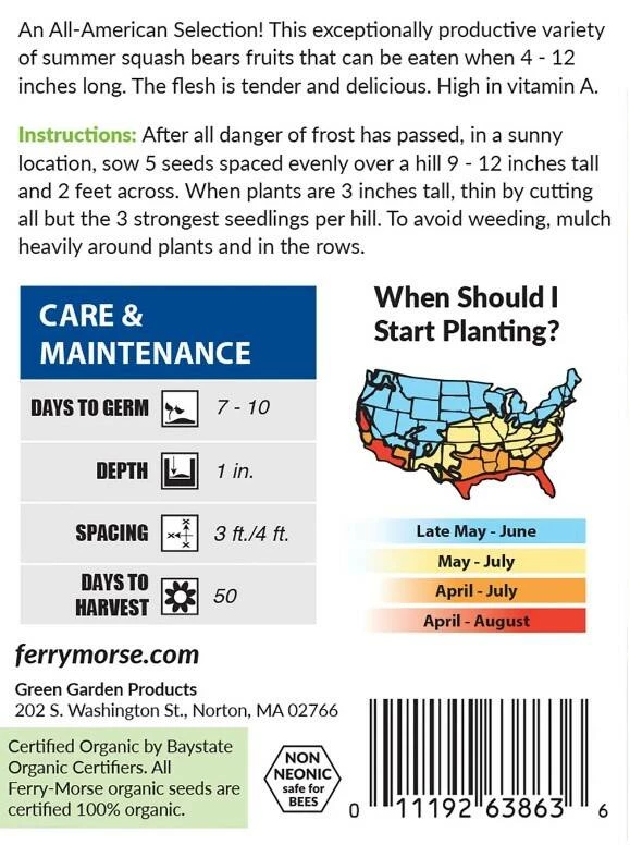 Organic Early Prolific Straightneck Squash is an All-America Selections-winning summer squash variety. This exceptionally productive summer squash bears fruits that can be eaten when 4″-12″ long and are high in vitamin A.