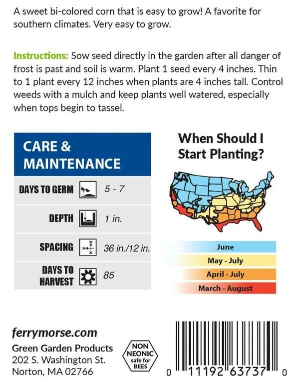 These sweet corn seeds produce corn that is prized for its delicious flavor and reliable, fast-maturing qualities. Enjoy the sweet, creamy taste of fresh corn in as little as 85 days!
