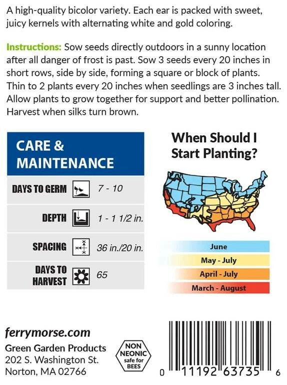 Silver’N Gold Hybrid Sweet Corn is a high-quality, bicolor corn variety. Each ear of corn is packed with sweet, juicy kernels that have alternating white and gold coloring.