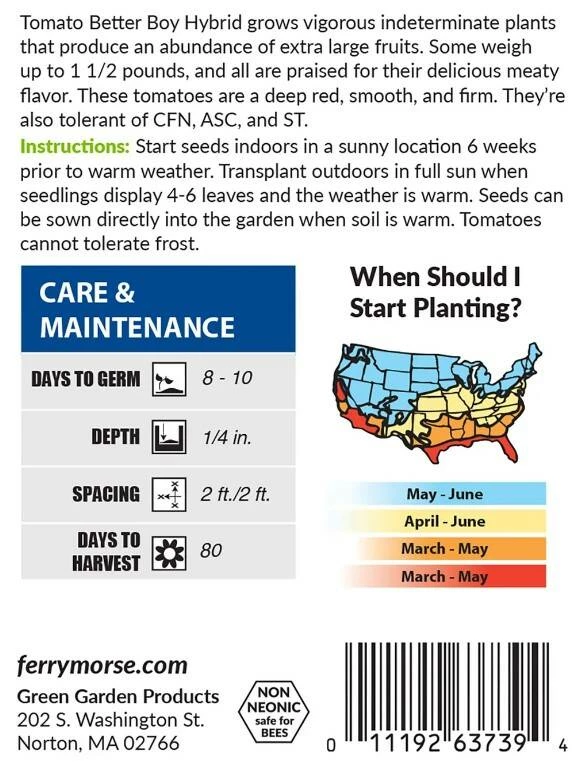 These tomatoes are perfect for your garden?a top-performing variety that produces copious amounts of large, flavorful fruits with excellent disease resistance. Enjoy the flavor of a fresh, home-grown tomato all summer long!