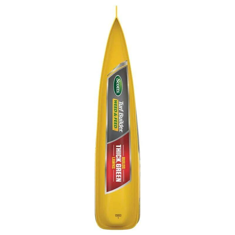 Scotts® Turf Builder® Weed & Feed? weed killer plus fertilizer kills existing weeds and feeds to thicken your lawn and crowd out future weeds. Apply when weeds are actively growing and daytime temperatures are between 60-degrees F and 90-degrees F. It controls over 50 listed lawn weeds, including clover, dandelion, plantain, morningglory, chicory, eveningprimrose, and purslane. This lawn care product is for use on Bahiagrass, Bermudagrass, Bluegrass, Centipedegrass, Fescue, Ryegrass, and Zoysiagrass. One 33.95 lb. bag of Scotts® Turf Builder® Weed & Feed? covers 12,000 sq. ft.