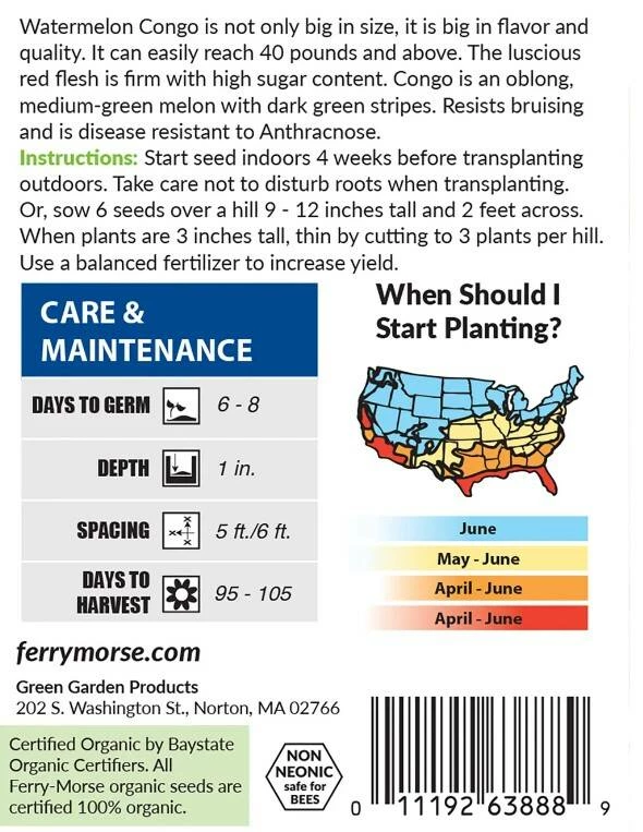 Ferry-Morse’s Congo Organic Watermelon Seeds will ensure you get the most out of your summer harvest. Enjoy the fruits of your labor with unbeatable summer sweetness.