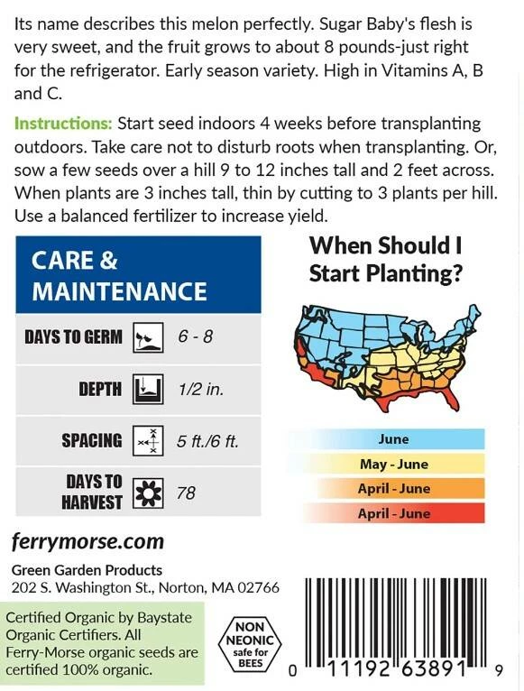 It is an early-season variety high in vitamins A, B, and C. Each 8-pound Sugar Baby is packed with an intense sweetness and a wealth of nutrients, making it ideal for refrigerator storage. With a bounty of vitamins A, B, and C, it’s an early-season variety that’s sure to please.