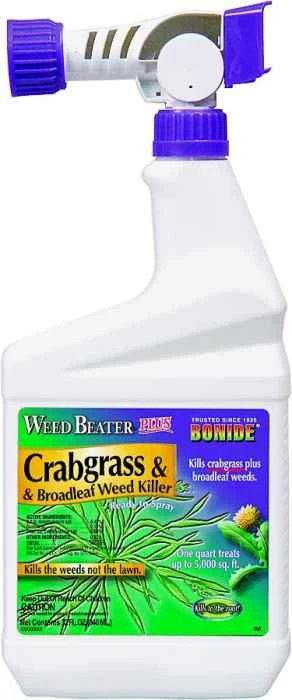 Contact and systemic action. Kills grasy weeds like crabgrass, goosegrass, broadleaf weeds like dandelion, black medic, chickweed, clover, creeping charlie, poison ivy, poison oak, speedwell, spurge, wild carrot, ground ivy and other listed weeds. One quart covers up to 6,600 sq. ft. Active ingredients: 2,4-Dichlorophenoxyacetic acid 5.33 percent and 3,7-Dichloro-8-quinolinecarboxylic acid 2.13 percent.