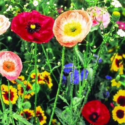 This pleasing blend of annual and perennial wildflowers irresistible to hummingbirds. The brightly colored blossoms also make a striking, continuously changing display in the garden throughout the season. Plants rebloom year after year. Also attracts butterflies. 1 – 3 ft high.